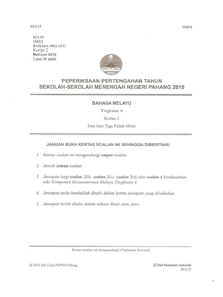 Ujian Pertengahan Tahun Bahasa Melayu Kertas 2 Tingkatan 4 Pdf